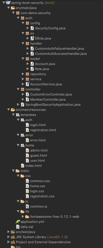 본 어플리케이션은 Spring Security관점에서 아래와 같이 크게 4가지 항목을 다루게 됩니다.