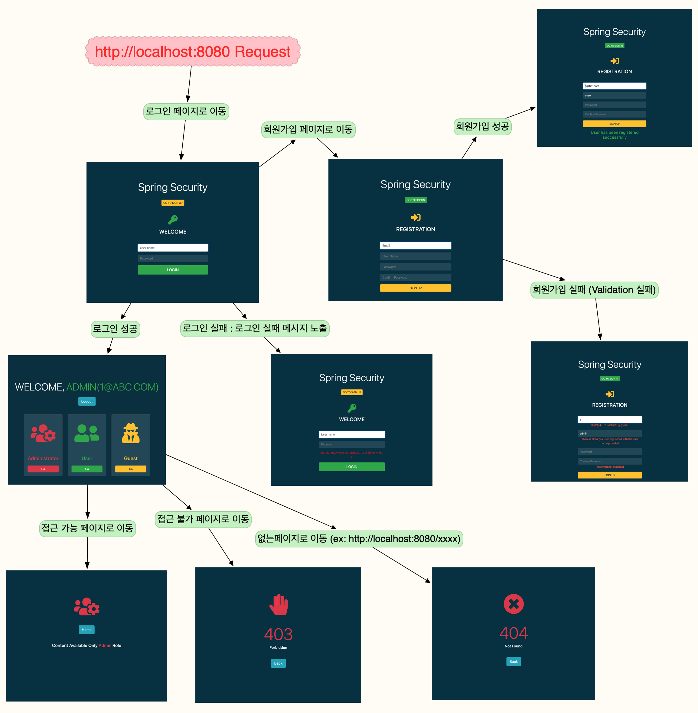 - 사용자 권한에 따른 페이지 접근 성공 및 실패 예제